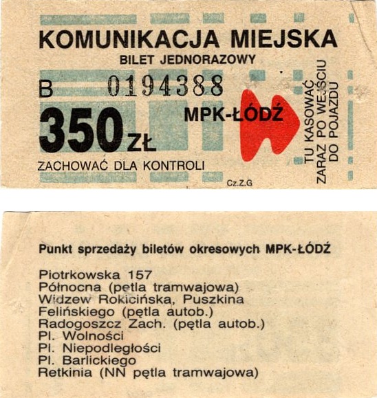 - 01.12.1990-17.03.1991, MPK Łódź, w prawym dolnym rogu napis „grafika”: