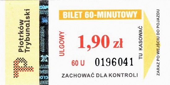 UWAGA: Bilet 1,30 zł U0752104 posiada nominał, serię i rodzaj biletu nadrukowane standardową farbą (nie świeci w UV)