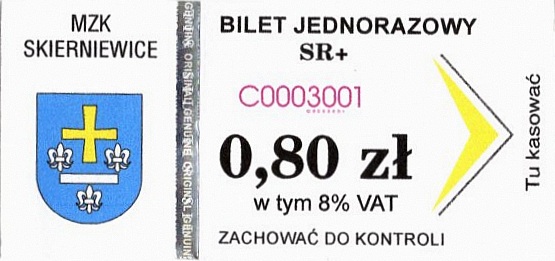 - Herb miasta, numerator komputerowy pogrubiony, hologram GENUINE ORIGINAL, w tym 8% VAT: