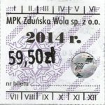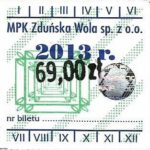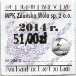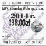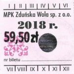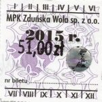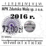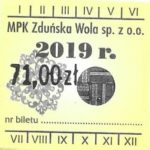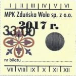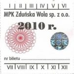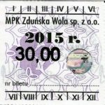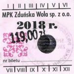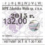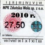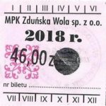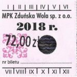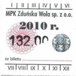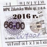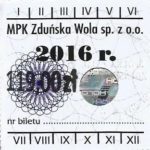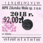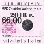 - Herb miasta, logo MPK, numerator komputerowy pogrubiony, hologram GENUINE ORIGINAL z prawej strony napisu „Komunikacja Miejska – Zduńska Wola”:
