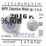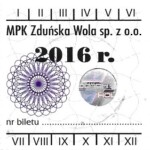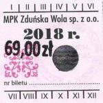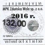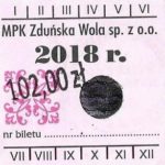 - Herb miasta, logo MPK, gładki hologram z prawej strony napisu „Komunikacja Miejska – Zduńska Wola”: