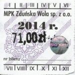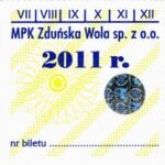 - Herb miasta, logo MPK, cienki numerator komputerowy, hologram GENUINE ORIGINAL z wytłoczonym napisem SIL z prawej strony napisu „Komunikacja Miejska – Zduńska Wola”: