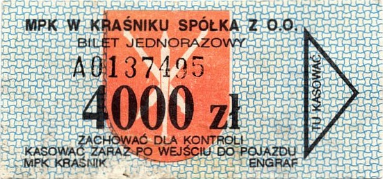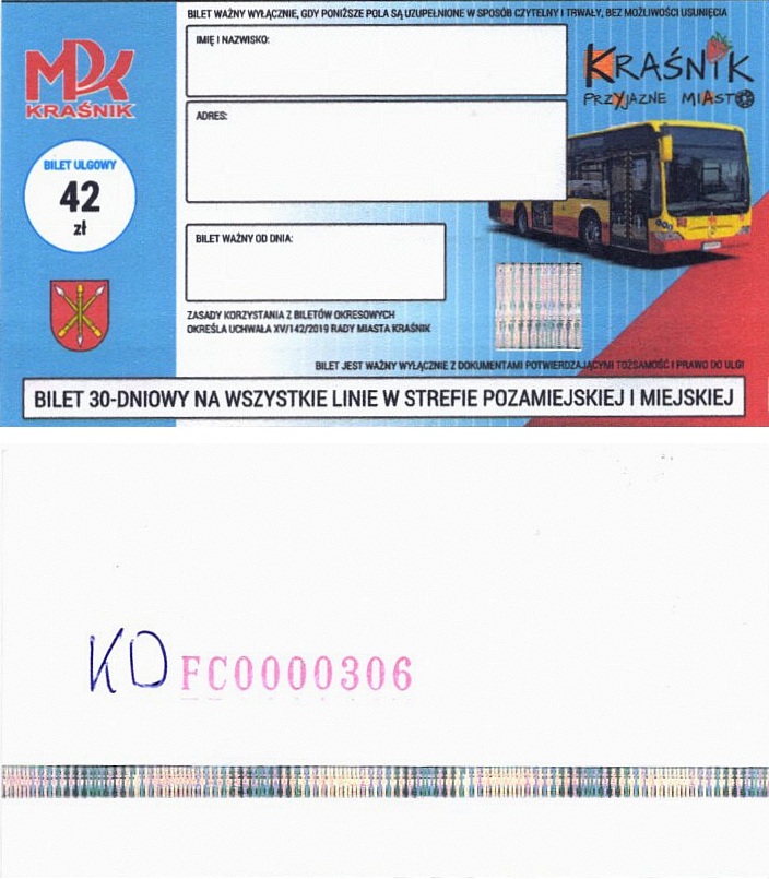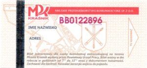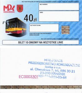 • Seria ogólnopolska, przestemplowano MPK Kraśnik Spółka z o.o.: