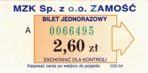 - Prostokąt z pasami w tle, Komunikacja Miejska – Zamość, Cz.Z.G.: