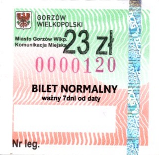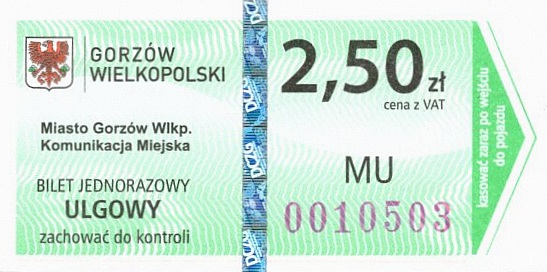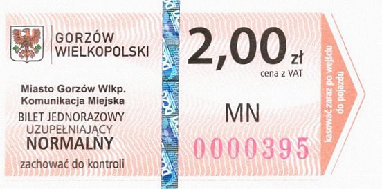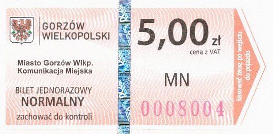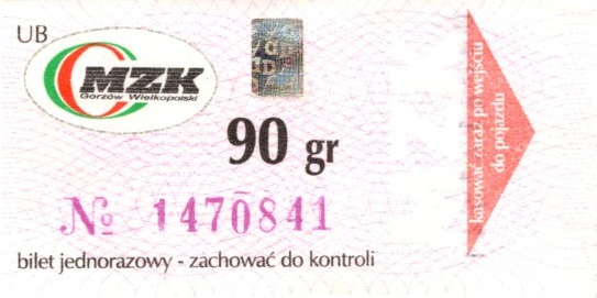 - MZK Gorzów Wlkp., napis MZK w polu na wydruk kasownika: