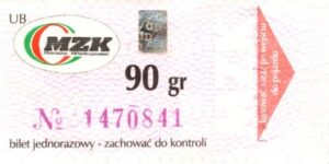 - Tło deseniowe, logo MZK, Nr przed numerem biletu: