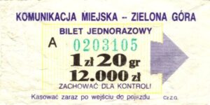 - Prostokąt z pasami w tle, Komunikacja Miejska – Zielona Góra, Cz.Z.G.: