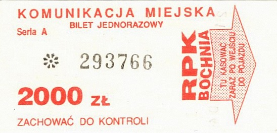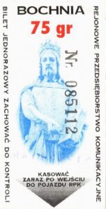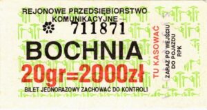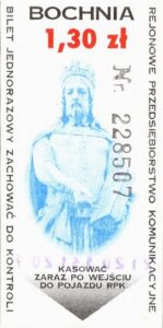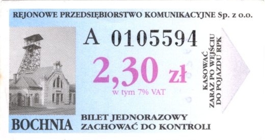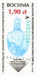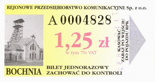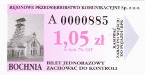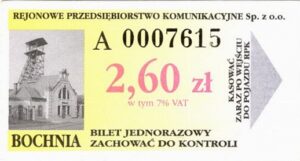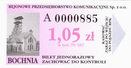 - Rejonowe Przedsiębiorstwo Komunikacyjne Sp. z o.o., w tym 7% VAT, mikrodruk pod napisem „Zachować do kontroli”, hologram DKK: