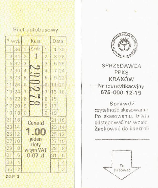 Uwaga: Bilety posiadają pomniejszoną czcionkę nominału oraz PTU