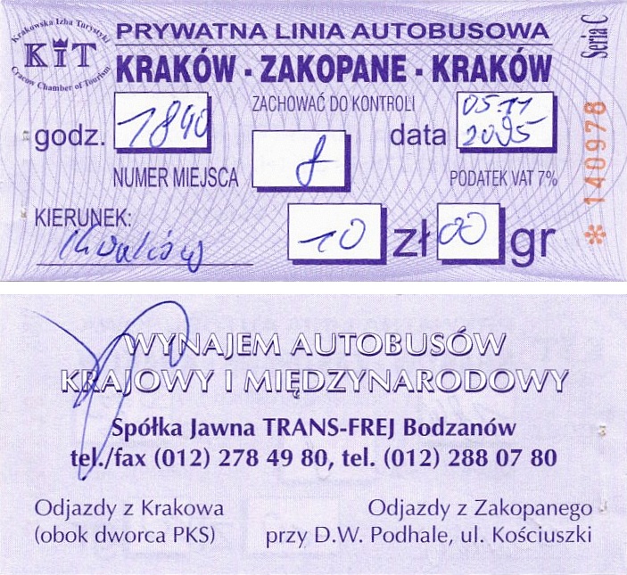 PRYWATNA LINIA AUTOBUSOWA KRAKOWSKIEJ IZBY TURYSTYKI: