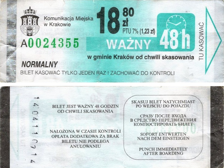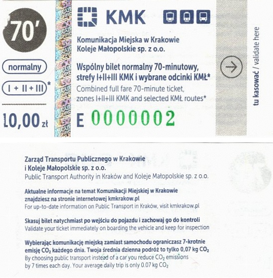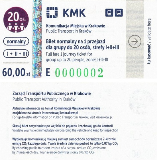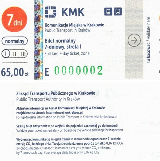 - Seria ogólnopolska, przestemplowano MPK Kraków:
