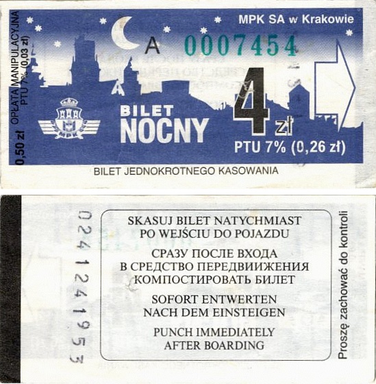 Uwaga: w biletach nocnych są dwie wersje („PUNCH […]” i „CANCEL […]”, Proszę zachować do kontroli z prawej strony na rewersie)