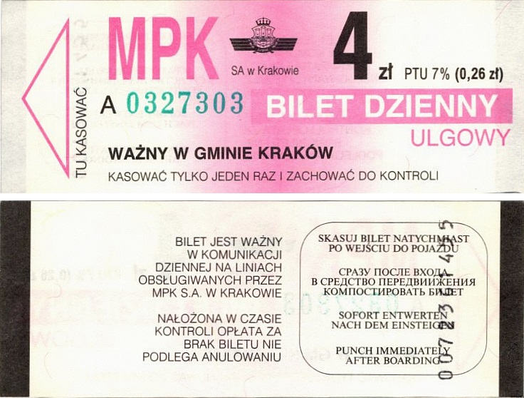 Proszę zachować do kontroli z lewej strony na rewersie (oprócz biletów grupowych i od dziennych wzwyż)