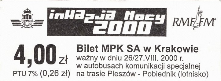 Uwaga: Bilety z czarnym numeratorem oraz „Inwazja Mocy 2000” zostały wydrukowane przez MPK