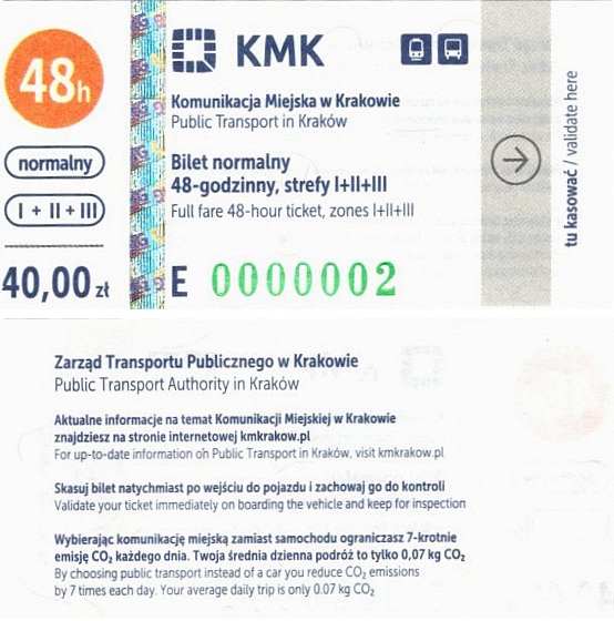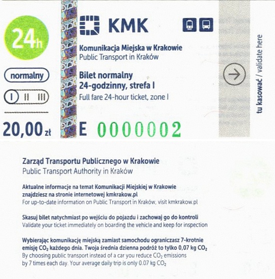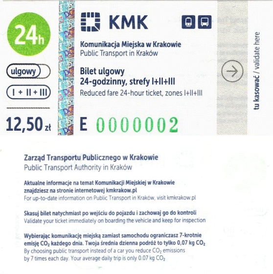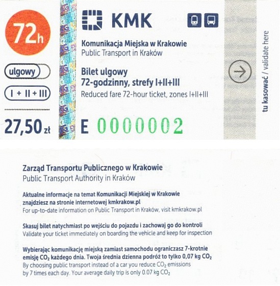 (Uwaga: bilety 24h, 48h, 72h, 7-dniowe, rodzinne i grupowe mogą mieć hologram IGKM)