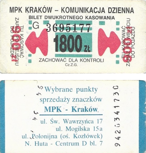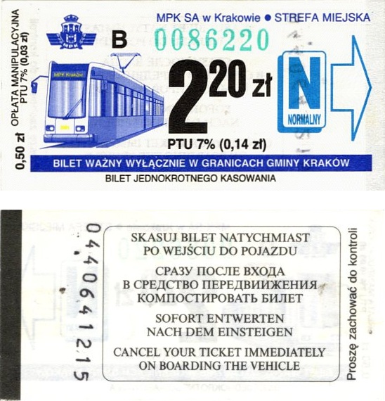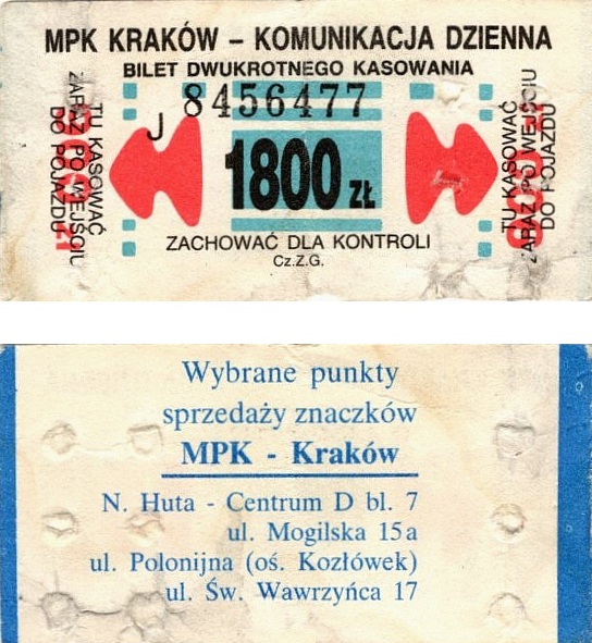 Na odwrocie: Zarząd Infrastruktury Komunalnej i Transportu w Krakowie, www.kmkrakow.pl: