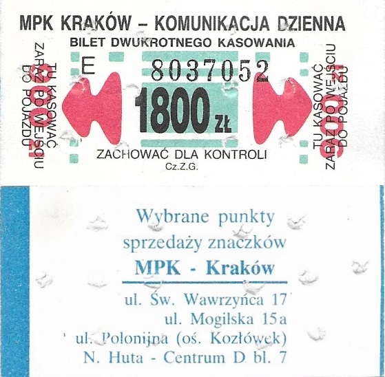 - M.P.K. w KRAKOWIE, Biletowa Poznań: