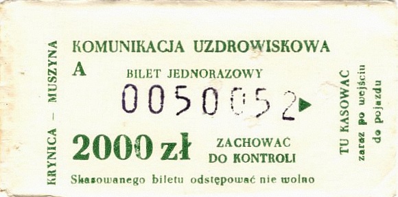 BILETY JEDNORAZOWE - KOMUNIKACJA UZDROWISKOWA: