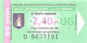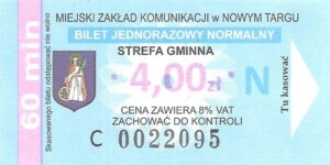 - Herb miasta, oznaczenie ważności, cena zawiera 8% VAT: