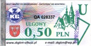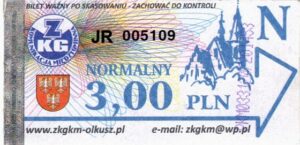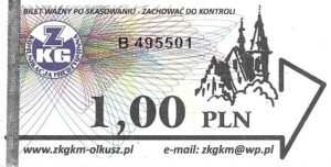 - Katedra, logo ZKGKM, herb powiatu olkuskiego, w tle rozeta, hologram GENUINE ORIGINAL: