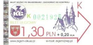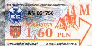 Uwaga: Bilety na linię miejską M mogą nie posiadać herbu