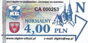 - Katedra, logo ZKGKM, herb miasta i gminy Olkusz, hologram CZG Ochrona: