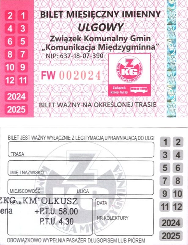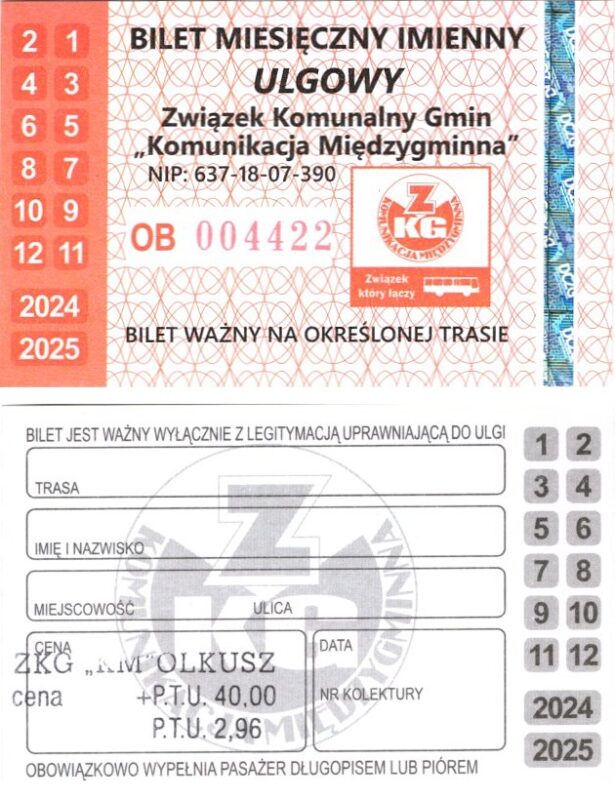 - Logo ZKGKM, hologram GENUINE ORIGINAL, pole na wydruk kasownika: