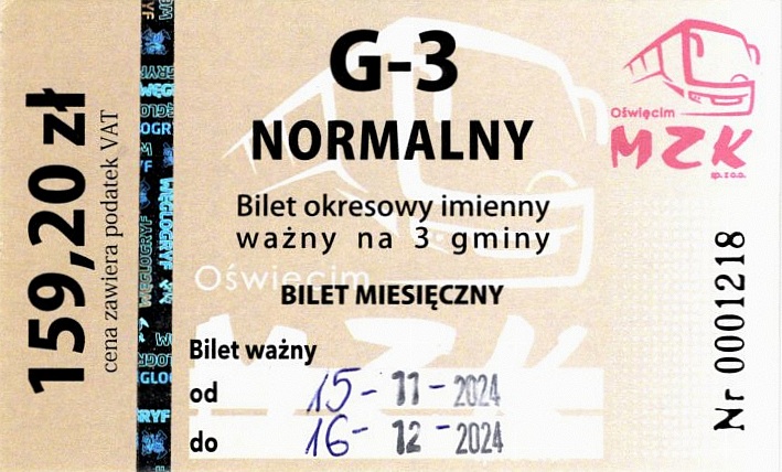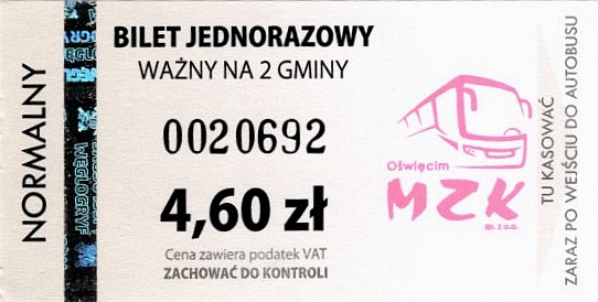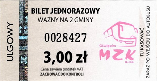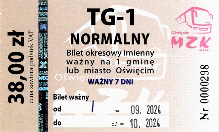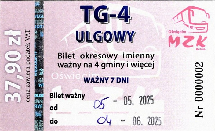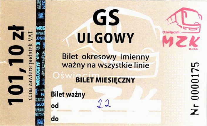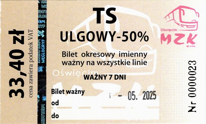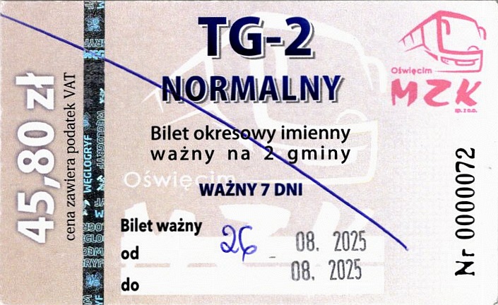 - Seria ogólnopolska, przestemplowano MPK Oświęcim: