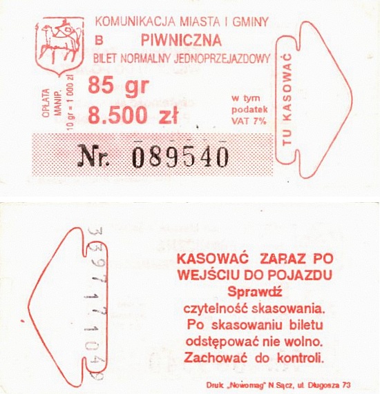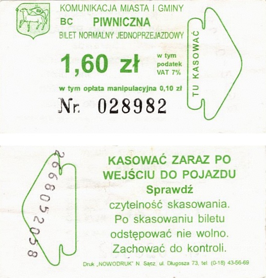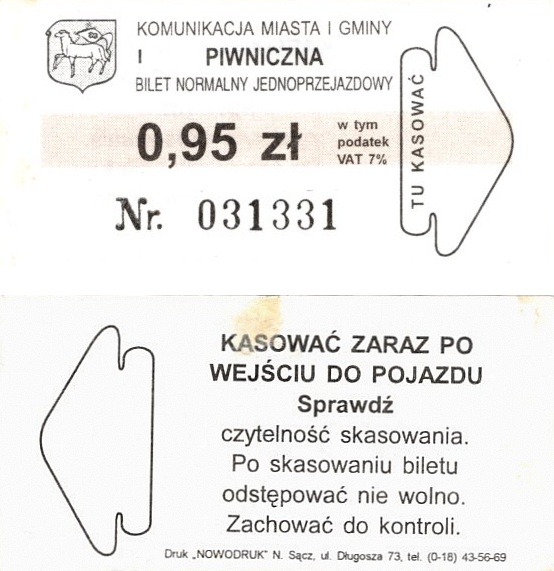 - Herb miasta, Komunikacja miasta i gminy Piwniczna: