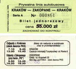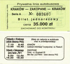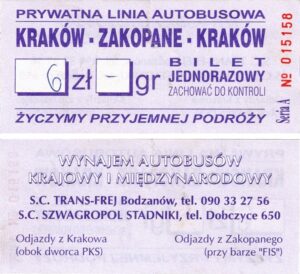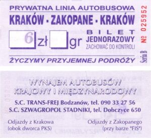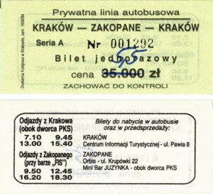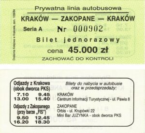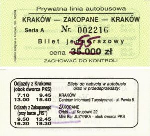 BILETY JEDNORAZOWE KRAKÓW <-> ZAKOPANE: