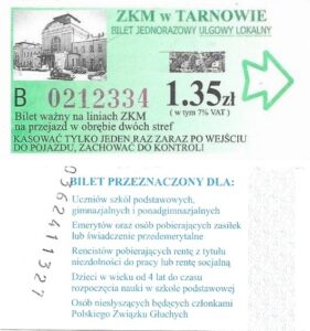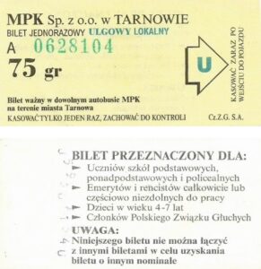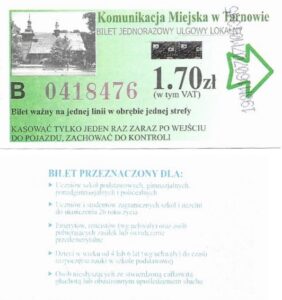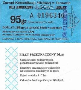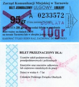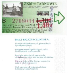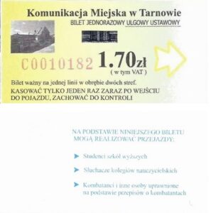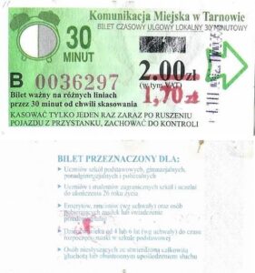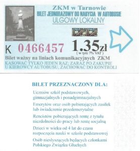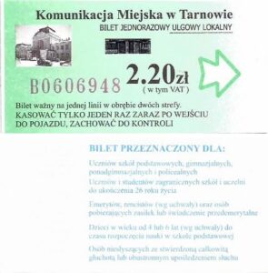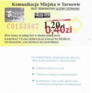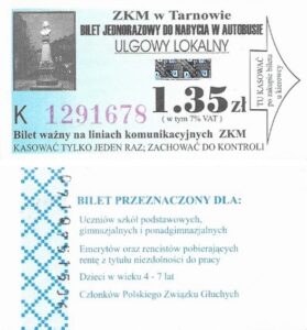 Uwaga: Bilety ulgowe ustawowe mają herb miasta zamiast obrazka