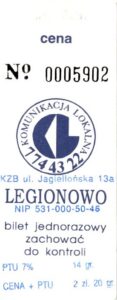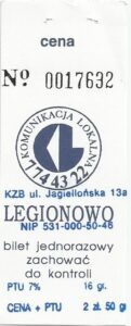BILETY JEDNORAZOWE ZAKŁADU KOMUNIKACJI LOKALNEJ: