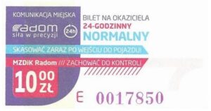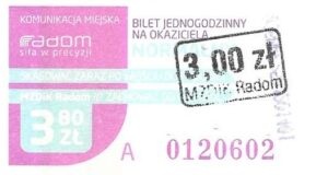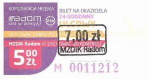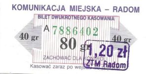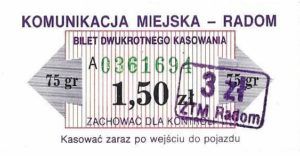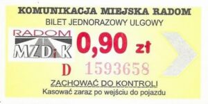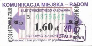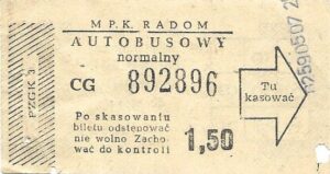 - Prostokąt z pasami w tle, Komunikacja Miejska – Radom, Cz.Z.G.: