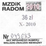 - Logo miasta, hologram DrukFont z wyciętym napisem MZDIK Radom: