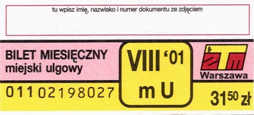 - Warszawska Karta Miejska z logiem Warszawskiego Transportu Publicznego: