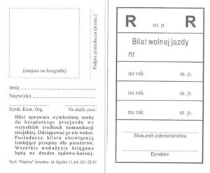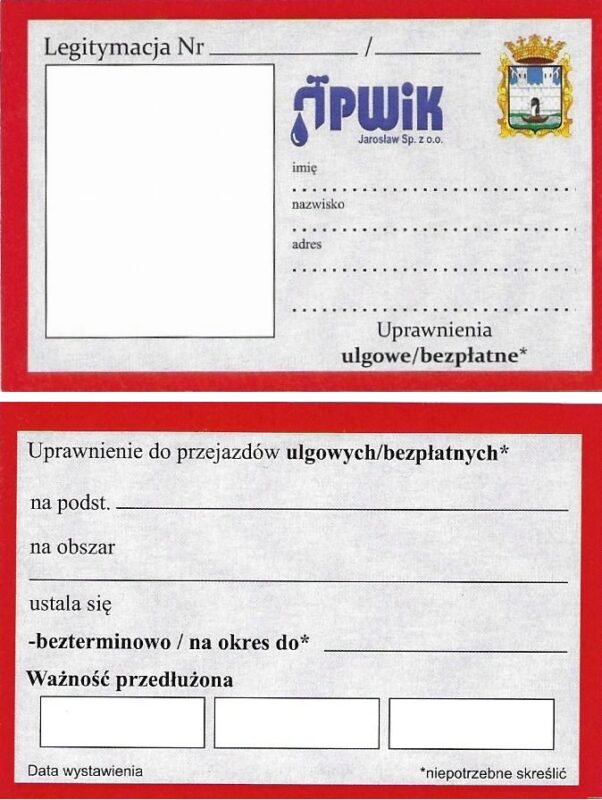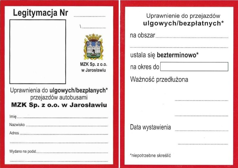 LEGITYMACJE DO UPRAWNIEŃ ULGOWYCH/BEZPŁATNYCH: