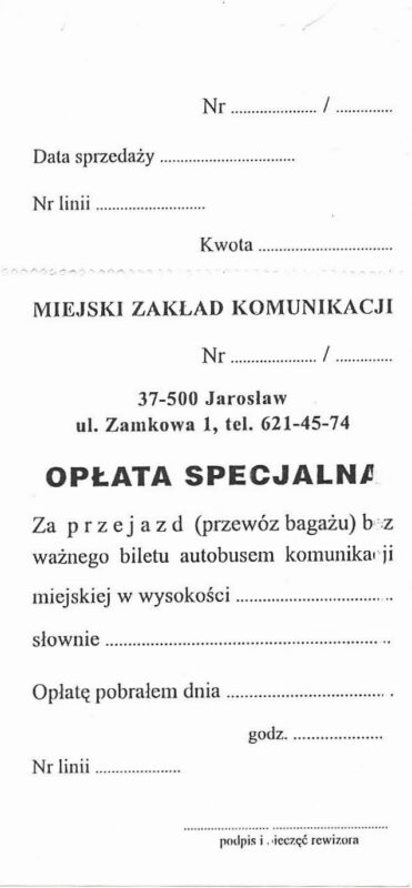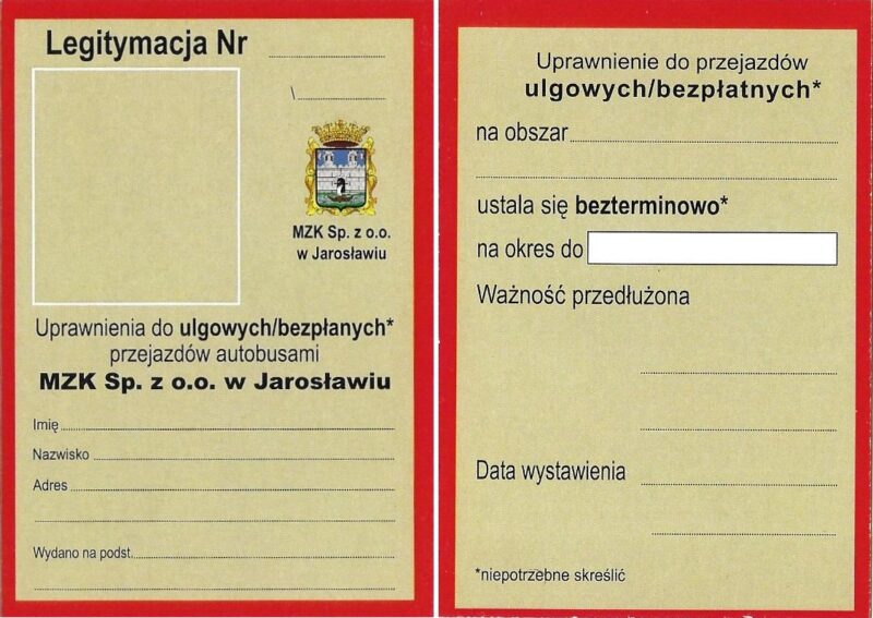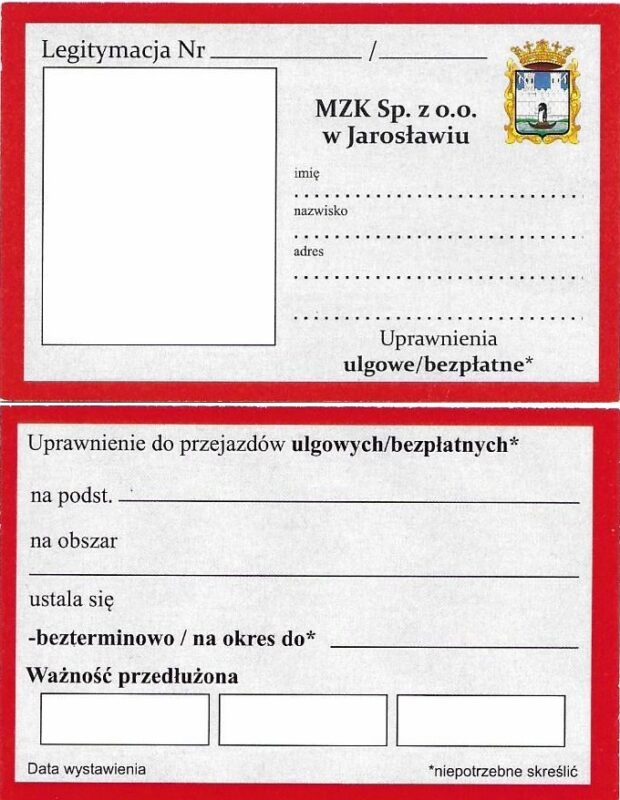 Uwaga: Od dnia 01.04.2024 komunikacja miejska jest bezpłatna dla posiadaczy Jarosławskiej Karty Mieszkańca