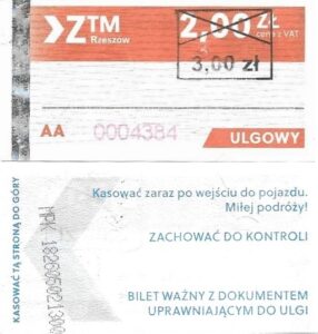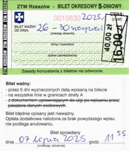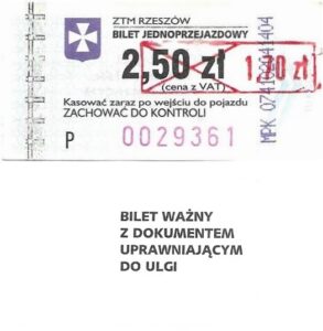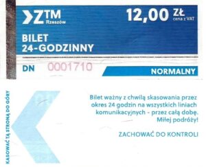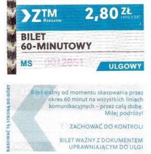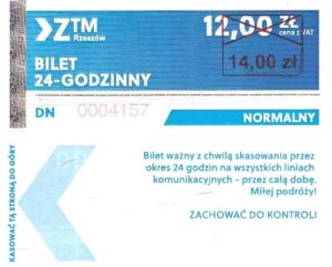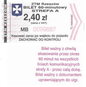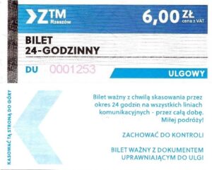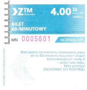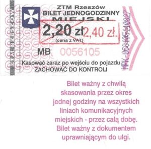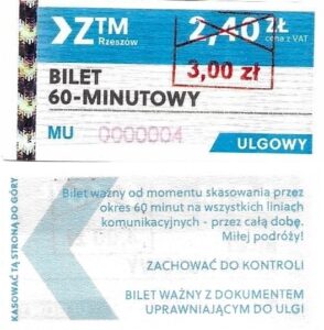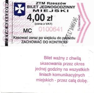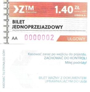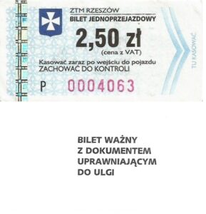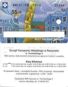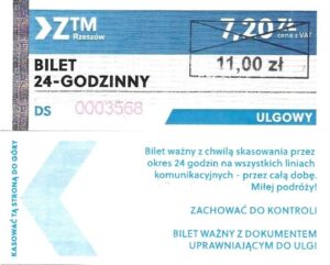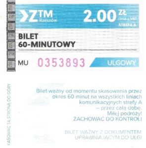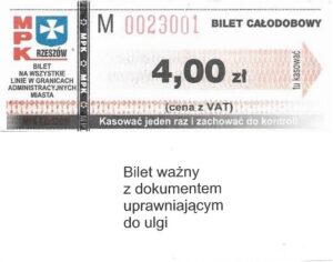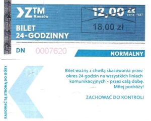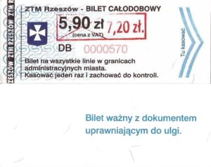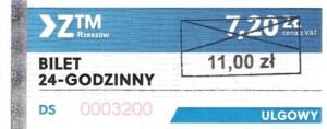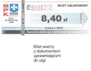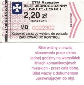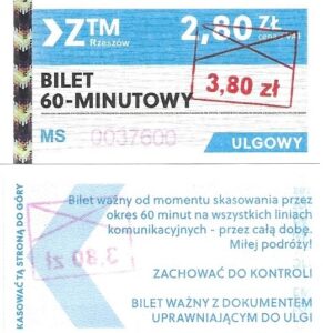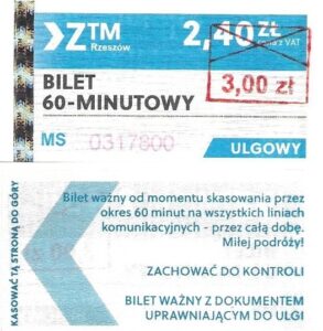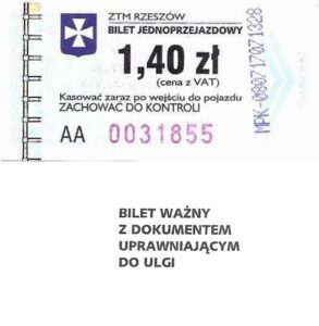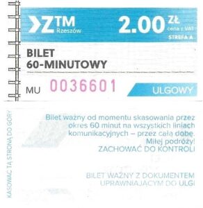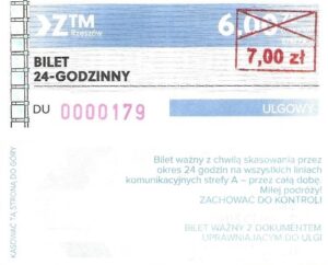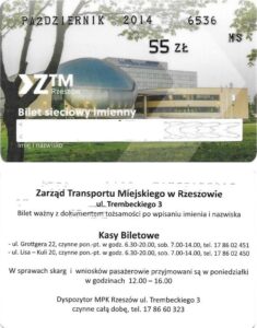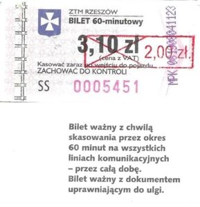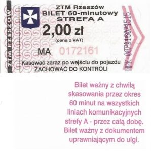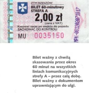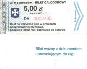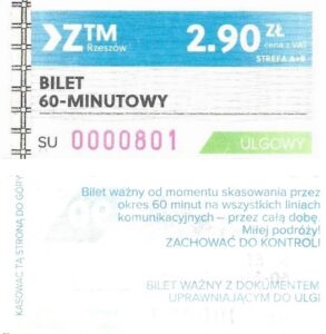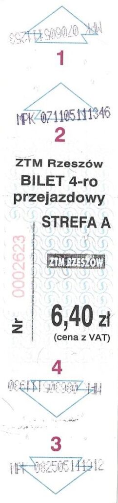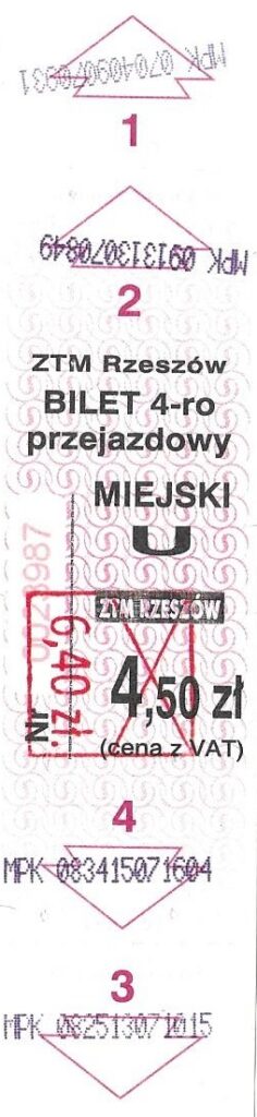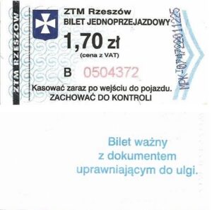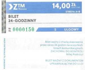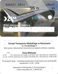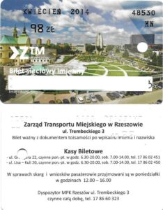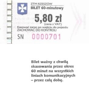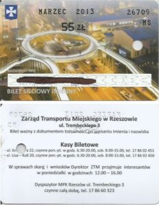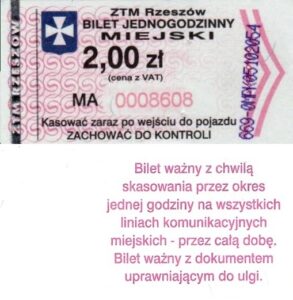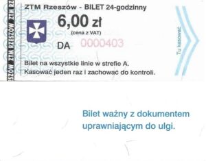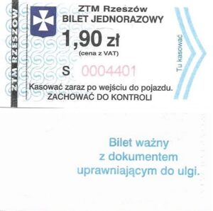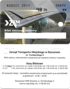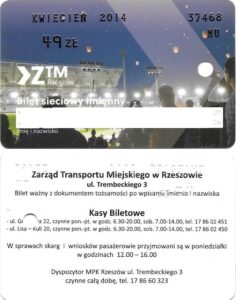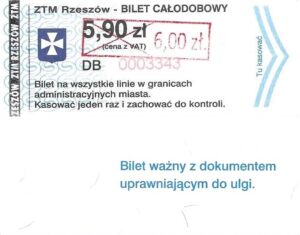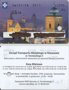 - Herb miasta, hologram z napisami ZTM Rzeszów: