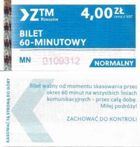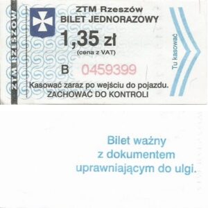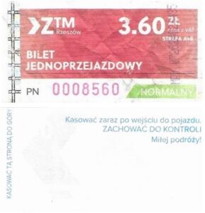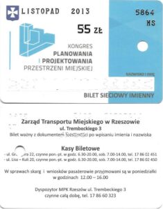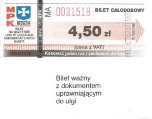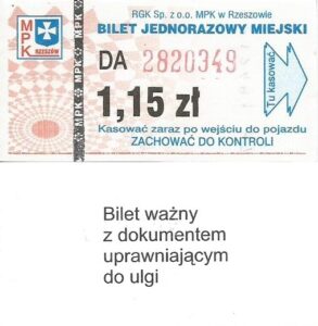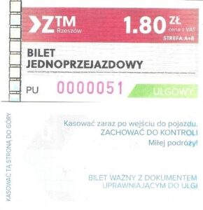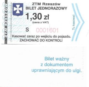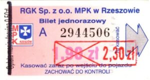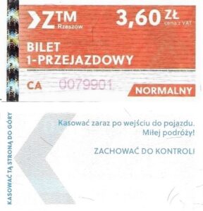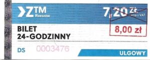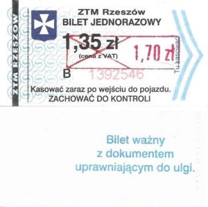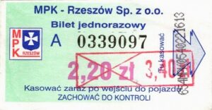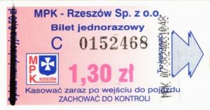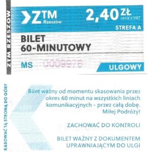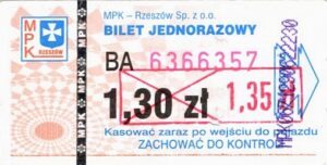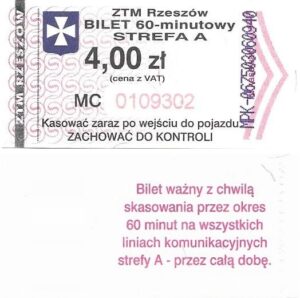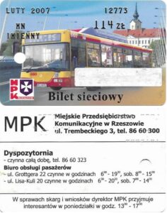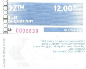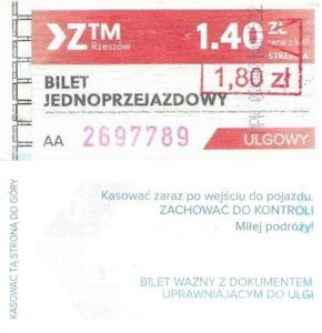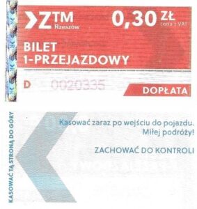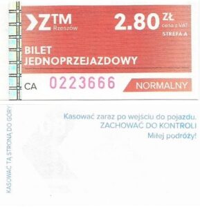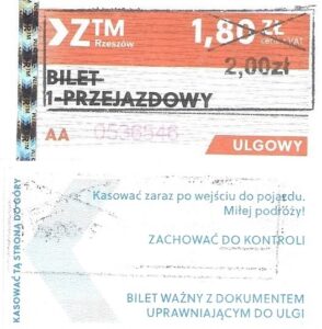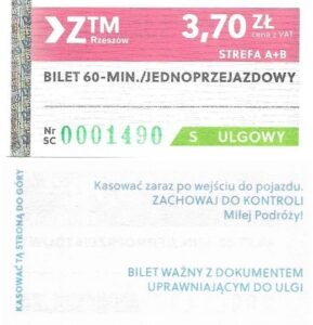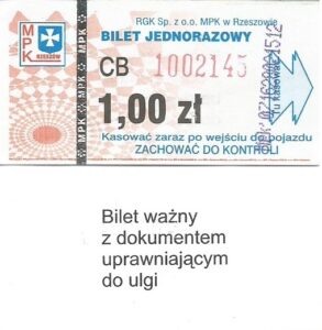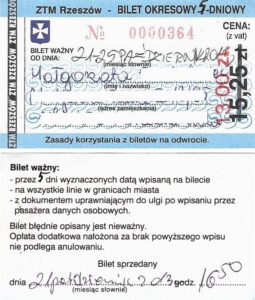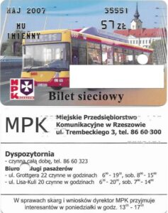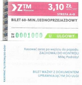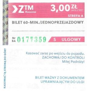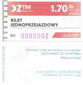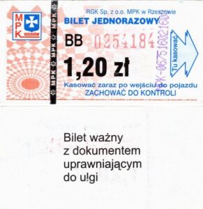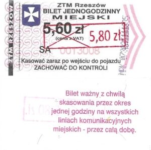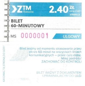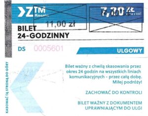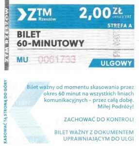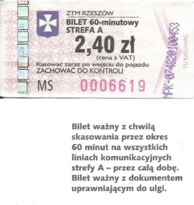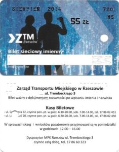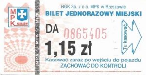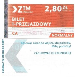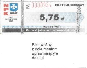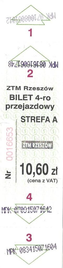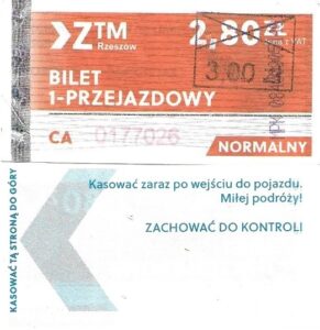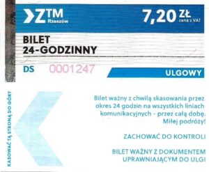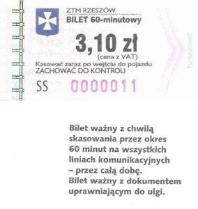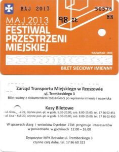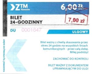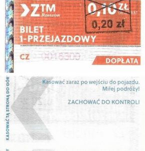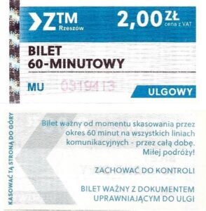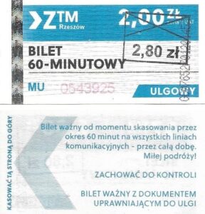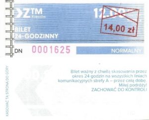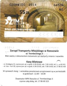 - Herb miasta, hologram z napisami ZTM Rzeszów: