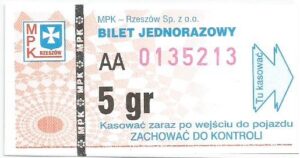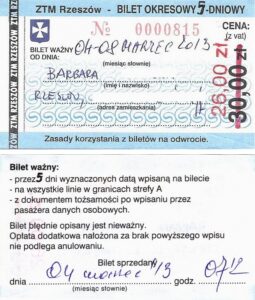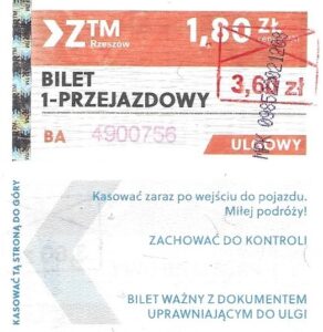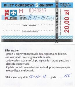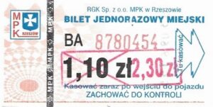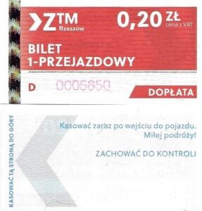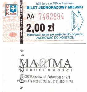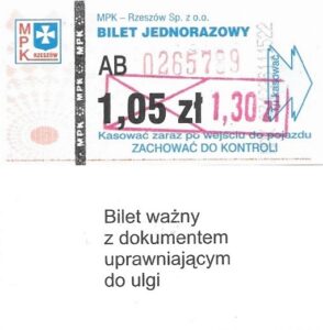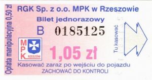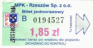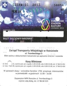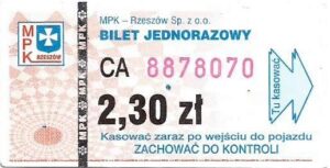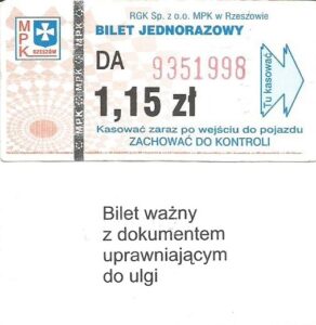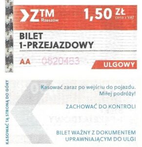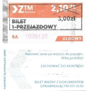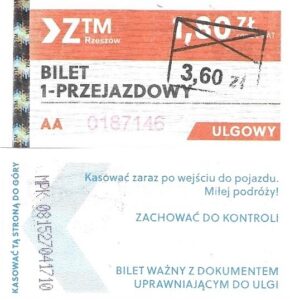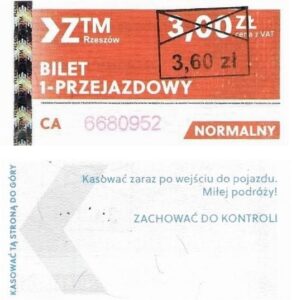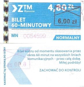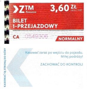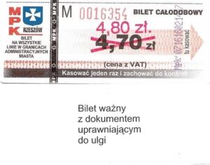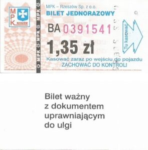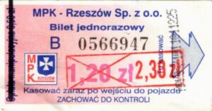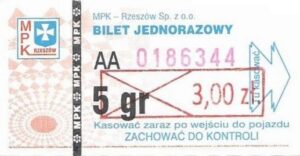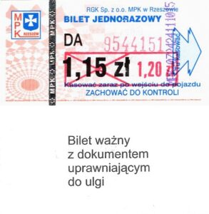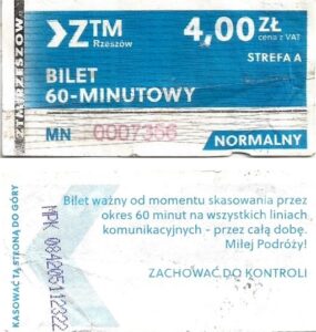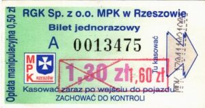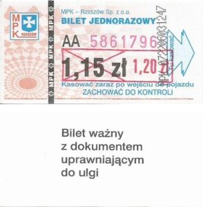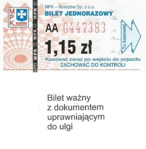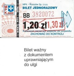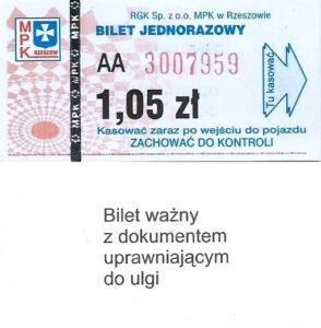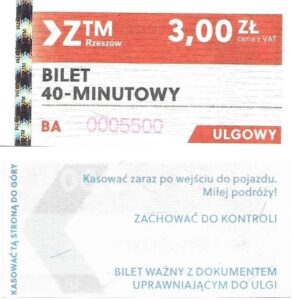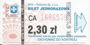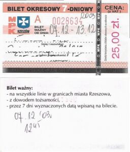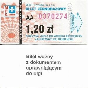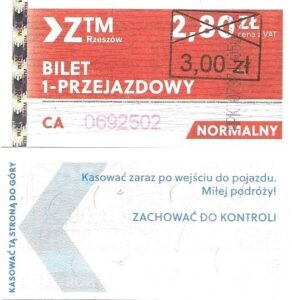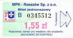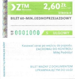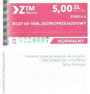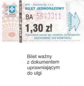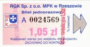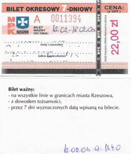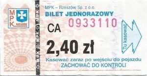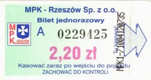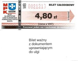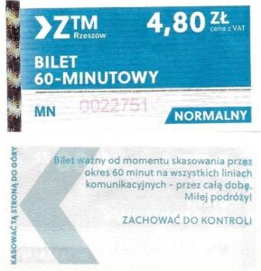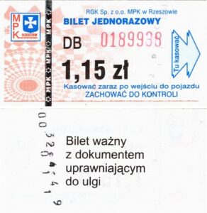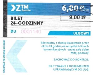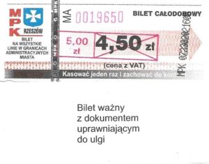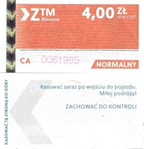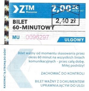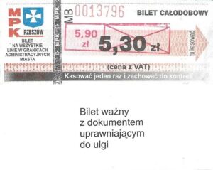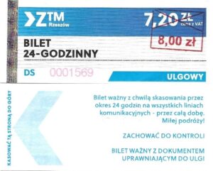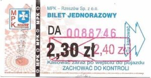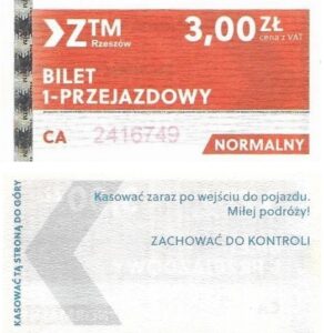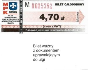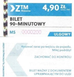 - Herb miasta, hologram z napisami ZTM Rzeszów:
