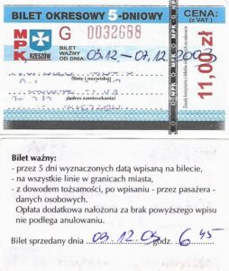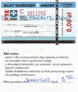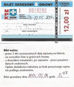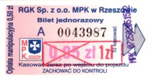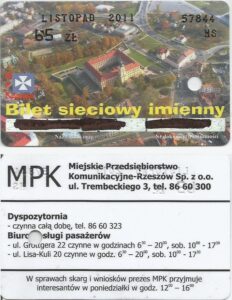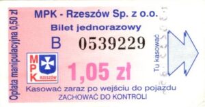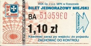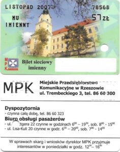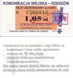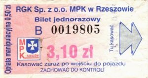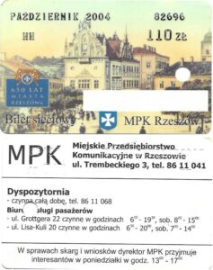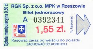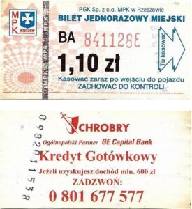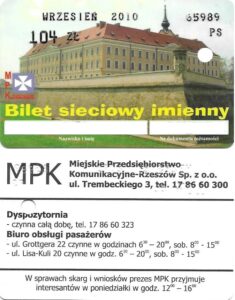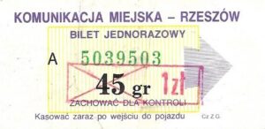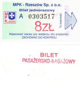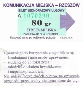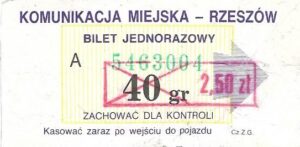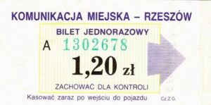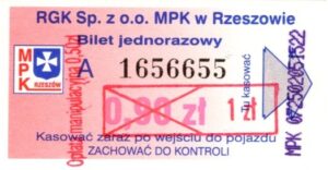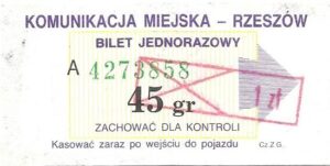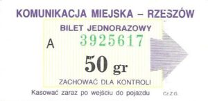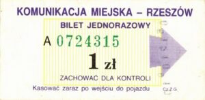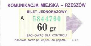 - Prostokąt z pasami w tle, Komunikacja Miejska – Rzeszów, Cz.Z.G.: