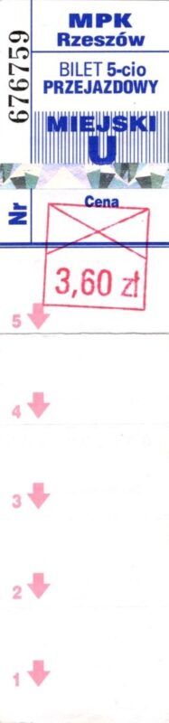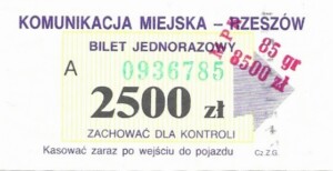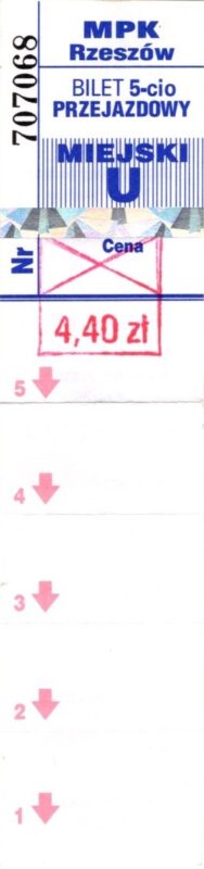 - Herb miasta, pasek holograficzny, ZTM Rzeszów: