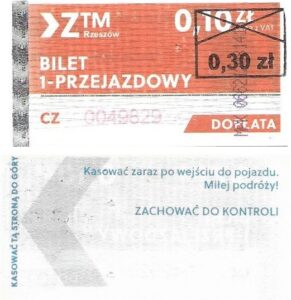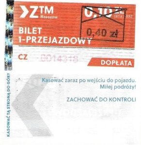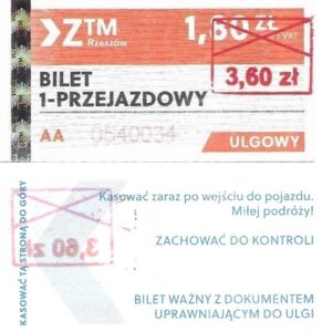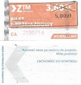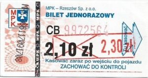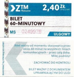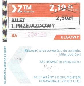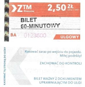 Uwaga: Bilet przebitkowy o nominale 2,50 zł pochodzi z cennika od 01.06.2023 (bilety 40-minutowe zostały wydłużone do 60 minut)
