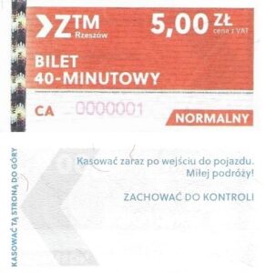 Uwaga: od 01.06.2023 bilety 40-minutowe zostały wydłużone do 60 minut