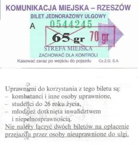- Kolorowy prostokąt, Komunikacja Miejska – Rzeszów, Cz.Z.G. S.A.: