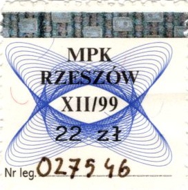 - Herb miasta, hologram z napisami ZTM Rzeszów:
