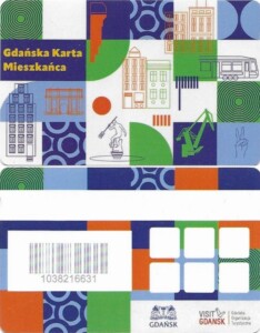 - Komunikacja Miejska w Gdańsku, w tle herb miasta, w lewym dolnym rogu napis „ZKM GDAŃSK”, w prawym dolnym rogu napis „grafika”: