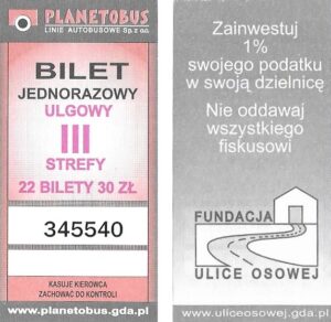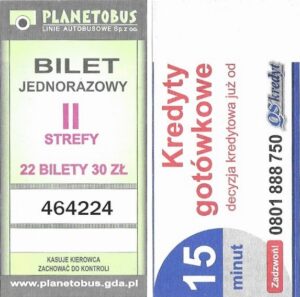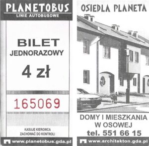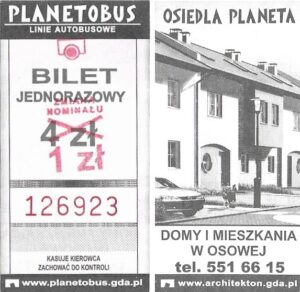 Gdańsk – PLANETOBUS BILETY JEDNORAZOWE:Nieznana drukarnia:Tło deseniowe, logo PLANETOBUS: BILETY OKRESOWE: