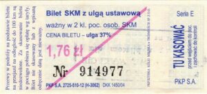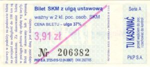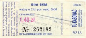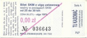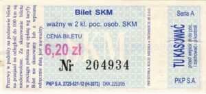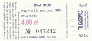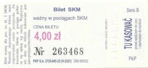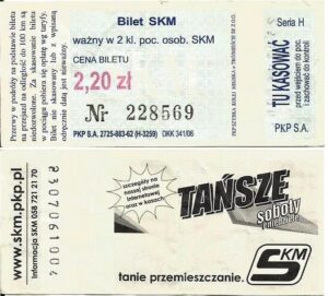 Na biletach: Szybka Kolej Miejska (obok pola na wydruk kasownika), PKP w stopce przy nr zamówienia oraz prawym dolnym rogu biletu