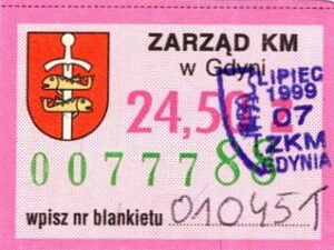 - Zarząd Komunikacji Miejskiej w Gdyni, herb miasta, numerator u dołu: